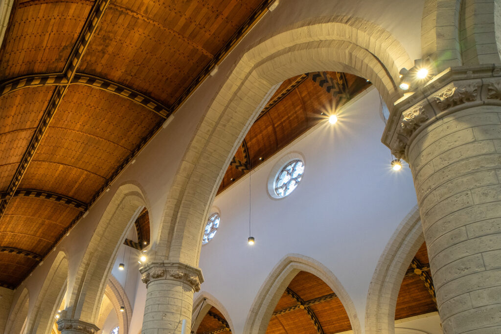 Im Herzen der belgischen Stadt Mechelen befindet sich die Kirche St. Katharina – ein historisches Bauwerk, dessen Architektur und Atmosphäre wesentlich von Licht geprägt sind. Ziel des neuen Beleuchtungskonzepts war es, den sakralen Charakter der Kirche hervorzuheben, zugleich aber eine klare, funktionale Ausleuchtung für Gottesdienste und Besucher zu gewährleisten. Unterschiedliche Raumzonen, Höhen und Materialien stellten dabei hohe Anforderungen an Präzision und Lichtqualität. Um diesen gerecht zu werden, entschied man sich für Beleuchtungslösungen von Hoffmeister.